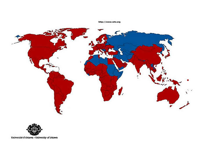 世界贸易组织成员国地理分布图