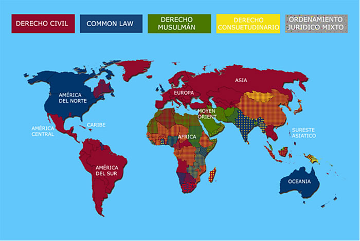 Civil Law Common Law Muslim Law Customary Law Mixed Sytems North America South America Oceania Africa Middle East Southeast Asia Europe Central America Carribean Asia